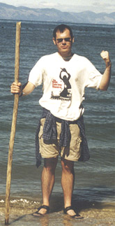 Me and the mighty staff of 'Shambala' on Farewell spit (Looking rather bald too)
