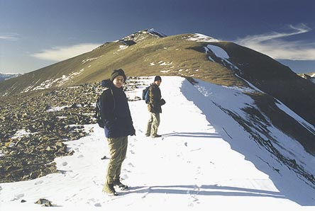 Jo and Michael fearlessly traversing a dangerously unstable cornice